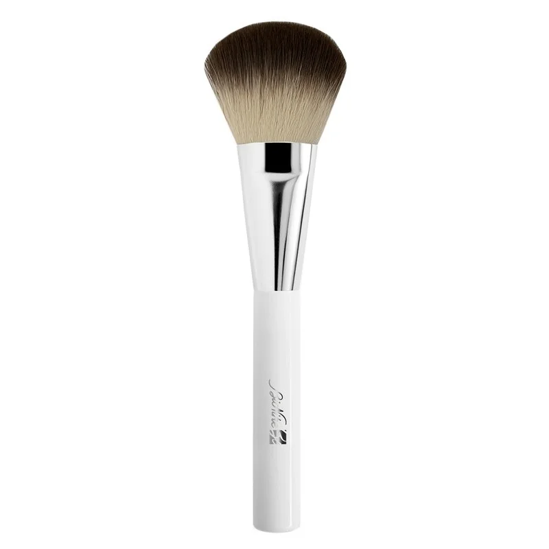 Raccogliere, con movimenti circolari, una piccola quantità di prodotto. Scaricare leggermente il pennello sul dorso della mano. Stendere sul viso con movimenti ampi e leggeri, dal centro verso l’esterno.