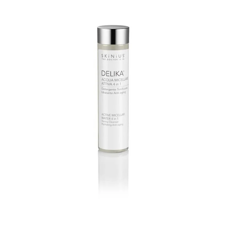 Deterge, tonifica, lenisce e svolge azione anti-aging lasciando l’epidermide idratata, tonica, elastica, compatta e luminosa. Rimuove il trucco e le impurità donando una piacevole sensazione di freschezza. Studiata per le pelli più delicate e sensibili, ideale anche in caso di pelle mista e pori dilatati. DELIKA contiene Fospidina, un complesso formato da fosfolipidi estratti dalla soia e glucosamina. La loro azione sinergica ha dimostrato un’importante azione rigenerante sui tessuti cutanei in quanto, l'attività della glucosamina, precursore dell’acido ialuronico, risulta efficace grazie alla veicolazione operata dai fosfolipidi che penetrano fino al derma.