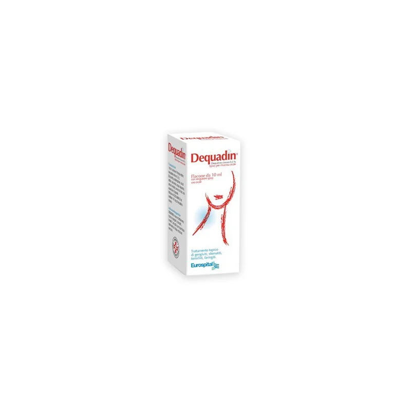 Dequadin contiene il principio attivo dequalinio cloruro (detto anche decametilen bis aminochinaldina cloruro), ed è un farmaco antibatterico a vasto spettro ed antifungino (antimicotico). E' attivo contro i batteri Gram positivi e Gram negativi, su Borrelia vincenti, Candida albicans e alcune specie di Tricophyton. Dequadin si usa nel trattamento topico (locale) di gengiviti (infiammazioni della gengive), stomatiti (infiammazioni della bocca), tonsilliti (infiammazioni delle tonsille) e faringiti (infiammazioni della faringe).