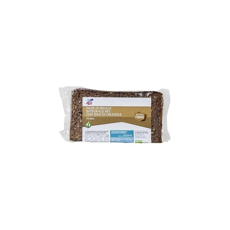Pane di sola farina di segale. Con semi di girasole. Non contiene lievito di birra. Alto contenuto di fibre.Ingredienti
