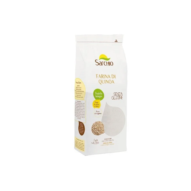 La farina di quinoa è una preziosa fonte di calcio e ferro, ed è ricca di magnesio. Ha un gusto deciso e può essere utilizzata in abbinamento ad altre farine per realizzare ricette da forno dolci e salate come biscotti, torte, pane e focacce.Senza glutine.