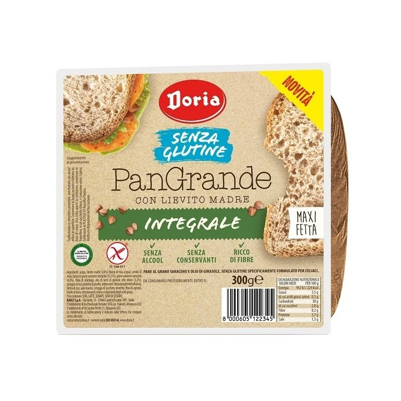 Acqua, lievito madre (24%) (farina di riso, acqua), amido di mais, farina di grano saraceno integrale (12,5%), grano saraceno spezzato (4,8%), fibra di plantago, olio di semi di girasole alto oleico (3,2%), scripoppo di riso, proteine di pisello; addensanti: idrossipropilmetilcellulosa, farina di riso; sale marino, sciroppo di zucchero invertito, fibra di agrumi, lievito di birra; emulsionanti: mono-e digliceridi degli acidi grassi.