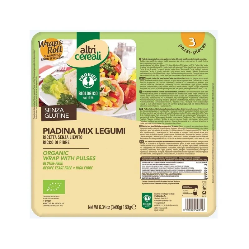 Probios Societa' Benefit Altricereali Piadina Mix Legumi 3 X 60 G