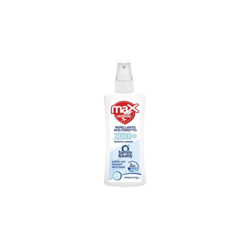 Repellente Multinsetto Spray Zero+ di Prontex, sicuro per i neonati fin dai primi giorni di vita.