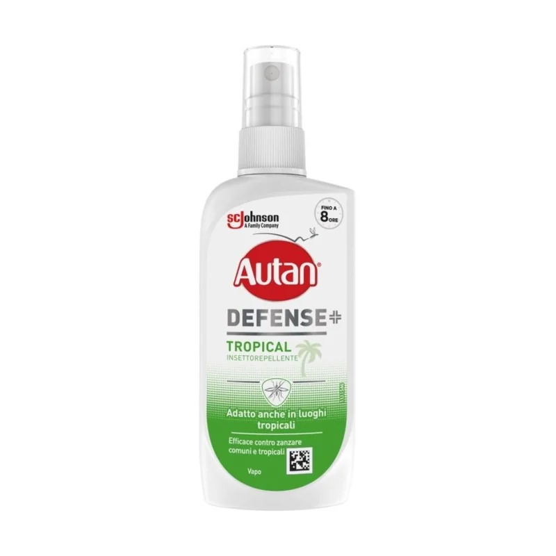 Autan Defense Tropical è uno spray insetto repellente che protegge immediatamente dalle punture di zanzare e altri insetti molesti: zanzare comuni (Culex Pipiens) e tropicali (Anopheles Stephensi) fino a 8 ore, zecche e tafani fino a 3 ore. La formulazione ne permette l'utilizzo anche in viaggio e vacanza. Presidio medico chirurgico.