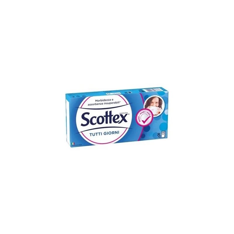Scottex Tutti Giorni è il fazzoletto ideale per le esigenze quotidiane di tutta la famiglia. Il prodotto è morbido e assorbente, quattro veli delicati e resistenti. I fazzoletti Scottex sono prodotti in Italia con carta certificata FSC (proveniente da fonti gestite in maniera responsabile).
