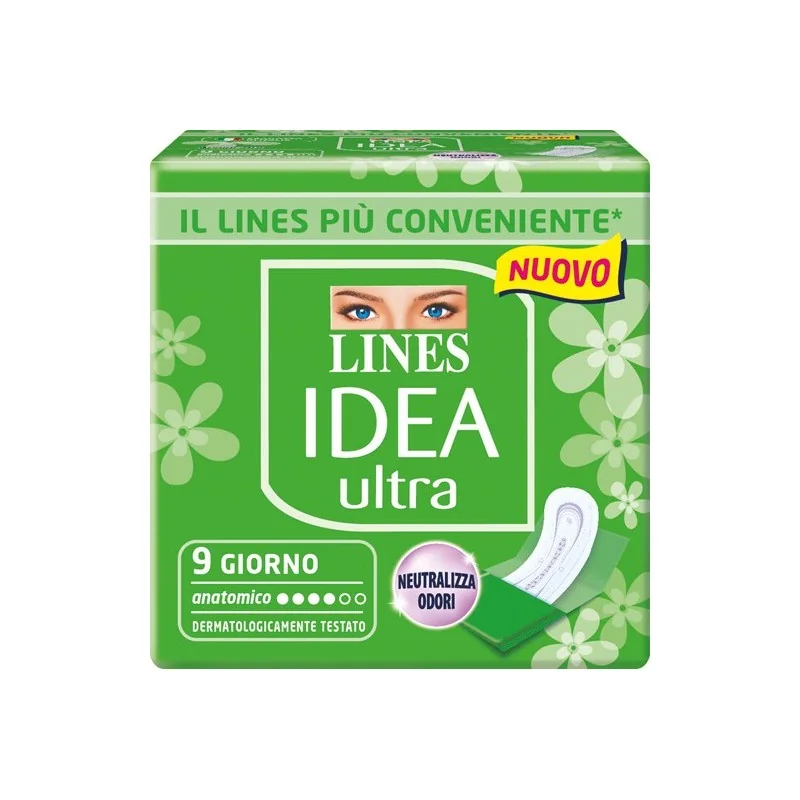 Gli assorbenti LINES Idea Ultra garantiscono la protezione e il comfort Lines e si prendono cura della pelle offrendo una sensazione di morbidezza. Nuovo design femminile. Comfort e discrezione assicurati in 3 mm di spessore. Con sistema Neutralizza Odori. Dermatologicamente testato.