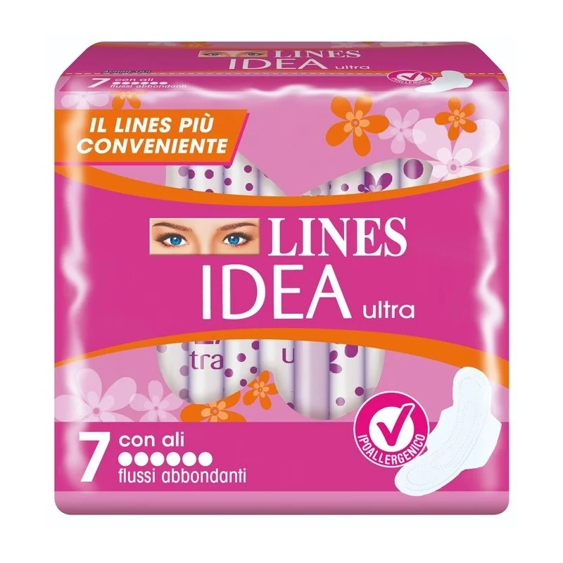 Gli assorbenti Lines Idea offrono la protezione e il comfort lines e si prendono cura della pelle offrendo un'ottima sensazione di morbidezza.