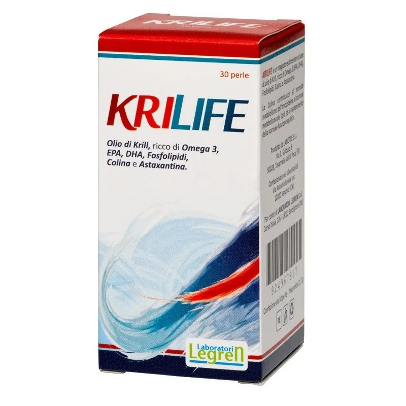 KRILIFE è un integratore a base del nuovo Olio di Krill concentrato* (Euphausia superba) naturalmente ricco di Omega-3 (EPA e DHA) coniugati ai Fosfolipidi che, per l'alta affinità al nostro organismo e l'idrosolubilità, garantiscono un rapido assorbimento e una veloce diffusione nei tessuti e nelle membrane cellulari. Le ridotte dimensioni delle perle, l'assenza di "odore di pesce" e il rapido assorbimento di KRILIFE garantiscono un'ottima digeribilità e tollerabilità. Al contrario, gli omega 3 derivati dal fegato di merluzzo o dall'olio di pesce, sono quasi esclusivamente sotto forma di trigliceridi (non idrosolubili) e per essere assorbiti devono essere prima digeriti. L'Astaxantina, naturalmente contenuta nel KRILIFE, è un potente antiossidante che garantisce sia la perfetta stabilità del prodotto senza la necessità di aggiungere additivi sia un'efficace protezione dell'organismo contro l'eccesso di radicali liberi.
