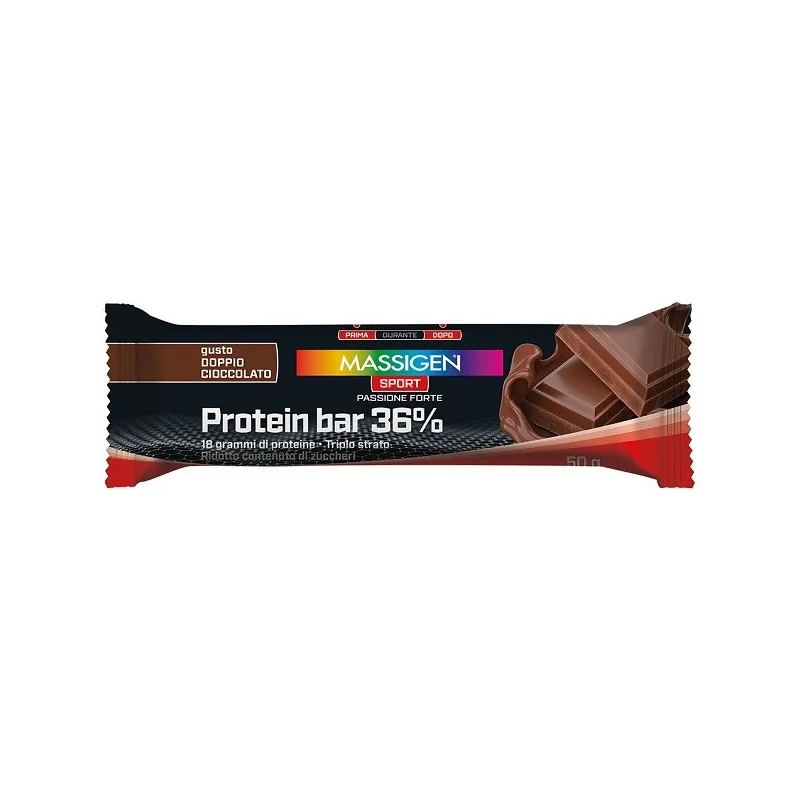 Massigen Sport Protein Barretta 36% Doppio Cioccolato con 18 grammi di proteine.