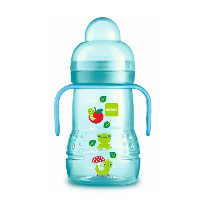 Mam Biberon Trainer Femmina è un prodotto con tettarella anti-goccia e beccuccio extra morbido per un passaggio naturale dall'allattamento al seno o biberon alla tazza.