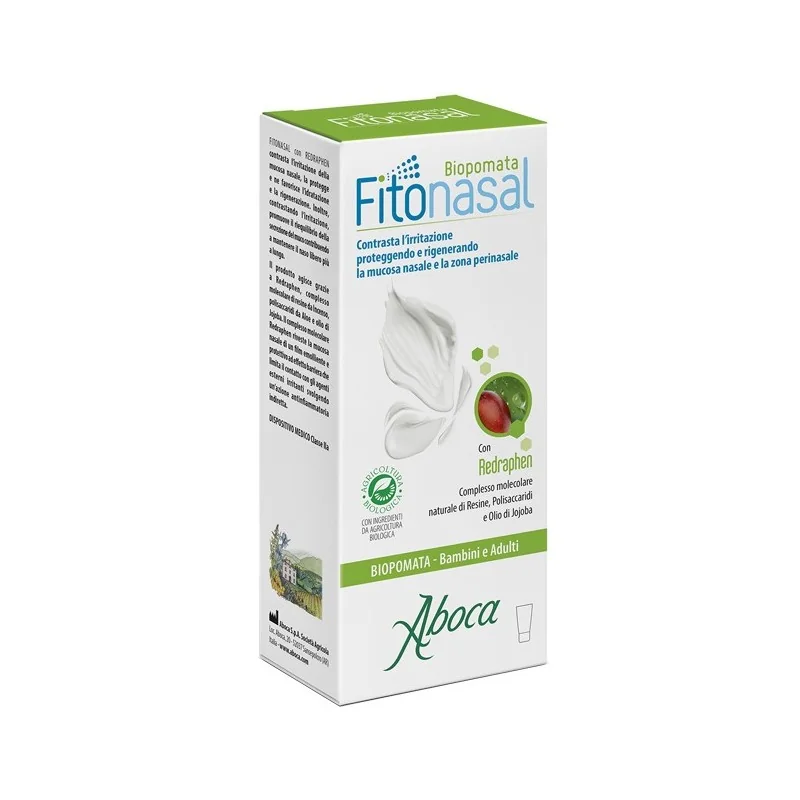 Fitonasal biopomata nasale aboca ,è un dispositivo medico adatto a risolvere l’irritazione nasale e perinasale. Formato un tubo da 10ml.