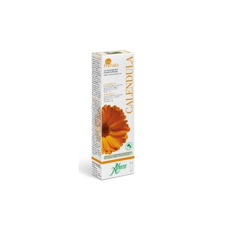 La calendula è una pianta erbacea annuale che fa parte della famiglia delle asteraceae. Le proprietà che caratterizzano la calendula sono antinfiammatorie e cicatrizzanti, promuove la produzione collagene e fibrina. La calendula è impiegata perciò per il trattamento delle infiammazioni cutanee, delle ferite, delle scottature. La biopomata calendula di Aboca è una formulazione che vede l'unione di: