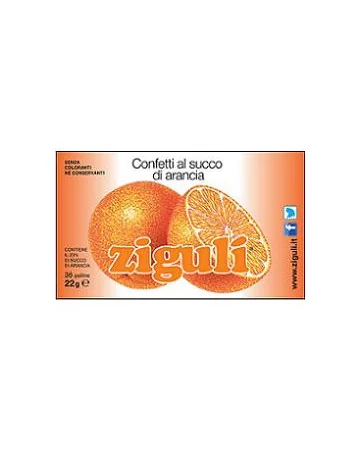 Destrosio; zucchero; succo di arancia 23% (da succo concentrato e disidratato); sciroppo di glucosio; addensante: gomma arabica; aromi; acidificante: acido citrico; antiagglomerante: magnesio stearato; agente di rivestimento: cera carnauba.