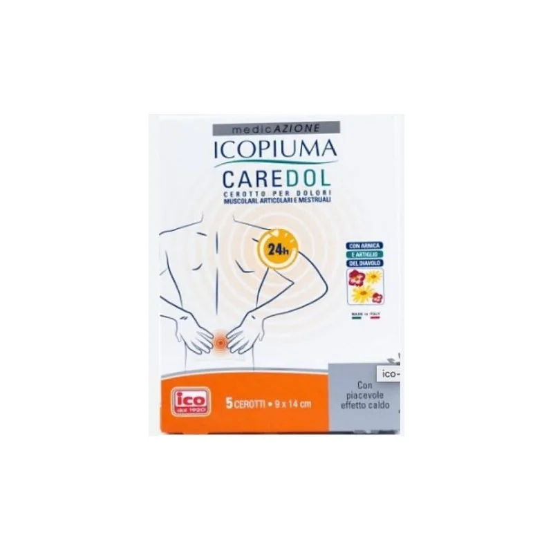Dispositivo medico formulato e progettato per beneficiare dei suoi componenti naturali, quali arnica, artiglio del diavolo e salice, che svolgono un'azione protettiva delle aree del corpo affette da dolori muscolari, articolari, contratture di varia natura (dolori reumatici, traumi sportivi, torcicollo e lombalgie) e dolori mestruali. Inoltre, la presenza di vanillyl butyl ether dona una piacevole sensazione di calore. La speciale tecnologia garantisce l'azione di Caredol per 24 ore, mentre la durata dell'effetto caldo tende ad esaurirsi nell'arco di alcune ore.