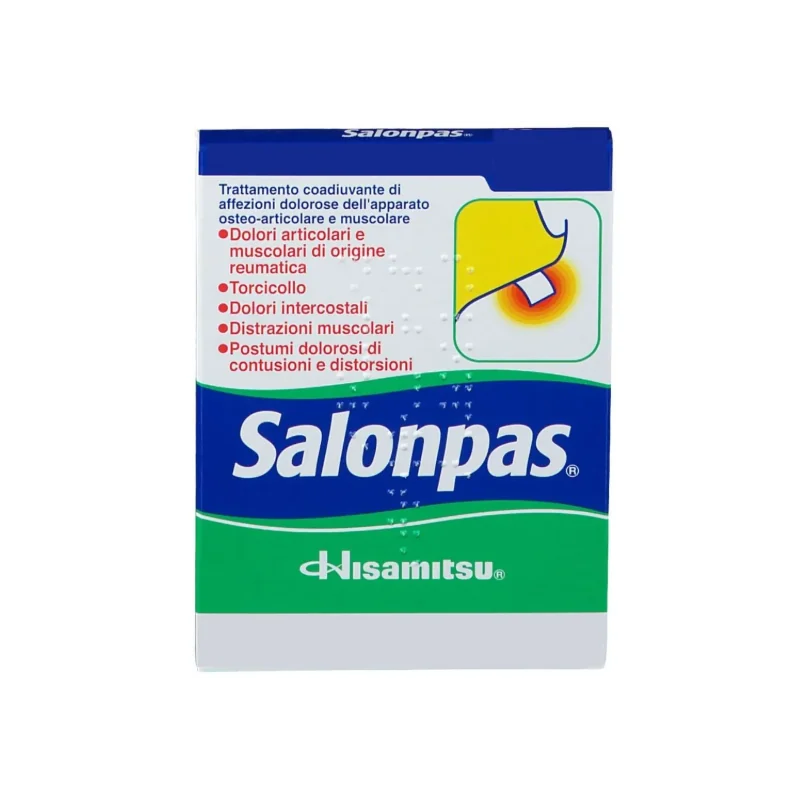 Salonpas contiene i principi attivi metile salicilato, levomentolo e dl-canfora. Salonpas è usato per ridurre il dolore locale.