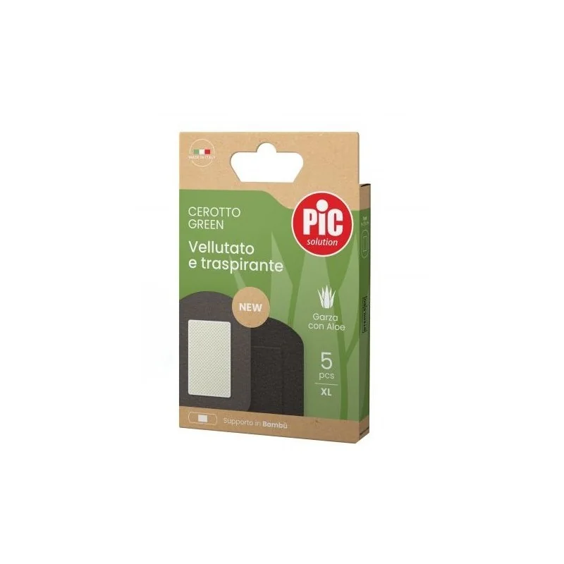 È la gamma di cerotti che offre tutta la competenza di Pic nel proteggere e prendersi cura delle ferite, con un particolare occhio di riguardo alla scelta dei materiali di origine naturale. I Cerotti Green si prendono cura delle ferite di piccole dimensioni che possono capitare nelle diverse attività di tutti i giorni: proteggono tagli e abrasioni unendo delicatezza, traspirabilità e l'effetto lenitivo e idratante dell'Aloe Vera.