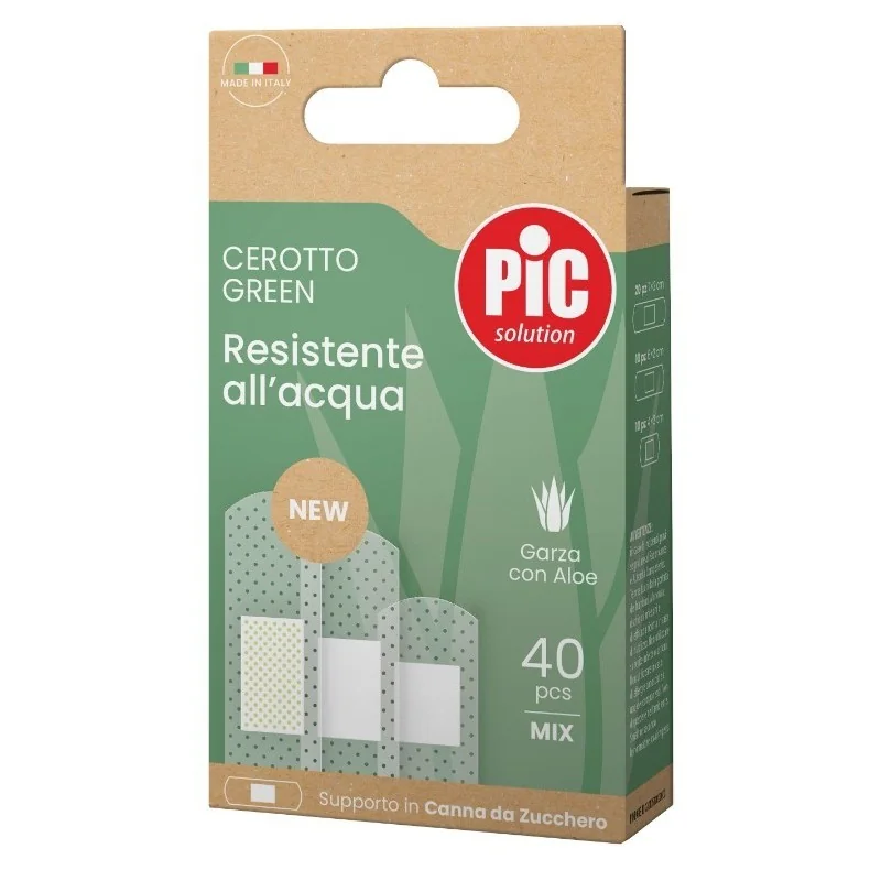 È la gamma di cerotti che offre tutta la competenza di Pic nel proteggere e prendersi cura delle ferite, con un particolare occhio di riguardo alla scelta dei materiali di origine naturale. I Cerotti Green si prendono cura delle ferite di piccole dimensioni che possono capitare nelle diverse attività di tutti i giorni: proteggono tagli e abrasioni unendo delicatezza, traspirabilità e l'effetto lenitivo e idratante dell'Aloe Vera.