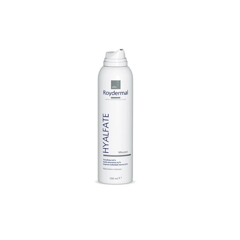 Roydermal Hyalfate è una mousse a base di acido ialuronico, sucralfato e argento che svolge un'azione antisettica e favorisce la riparazione della cute lesa