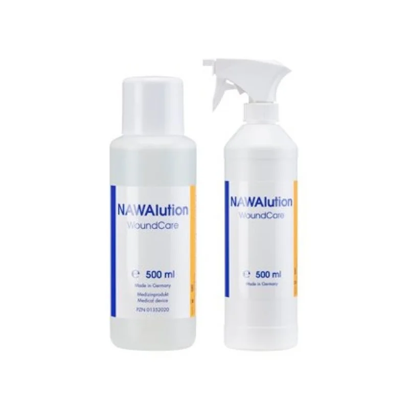 Pulizia della ferita: detergere la ferita con NAWAlution per allentare i rivestimenti e/o il biofilm. NAWAlution può essere applicato, non diluito, direttamente dalla bottiglia sulla ferita. I flaconi da 500 ml e 150 ml sono destinati alla pulizia della ferita, gli spray da 50 ml e 500 ml per la nebulizzazione su ampia superficie e il Foamer da 150 ml per l'applicazione di schiuma sulla ferita. Successivamente NAWAlution deve essere rimosso mediante un tampone sterile (pulizia meccanica). Il risciacquo successivo non è necessario. Idratazione con medicazioni: impregnare le medicazioni (ad es. impacchi, garze) con NAWAlution e applicare alla ferita per ca. 10-15 minuti. Dopo il tempo di ammollo le ferite devono essere pulite meccanicamente con i consueti tamponi sterili.