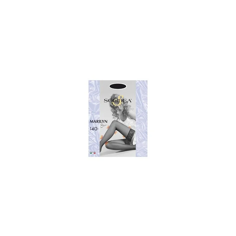 Calza autoreggente 140 denari a maglia liscia. Particolarmente velata ed elegante, con morbida balza in pizzo. La compressione graduata 18/21 mmHg aiuta la circolazione sanguigna ed evita l’aggravarsi di problemi da insufficienza venosa. Con soletta anatomica anti-stress.Con funzione igienica Sanitized.