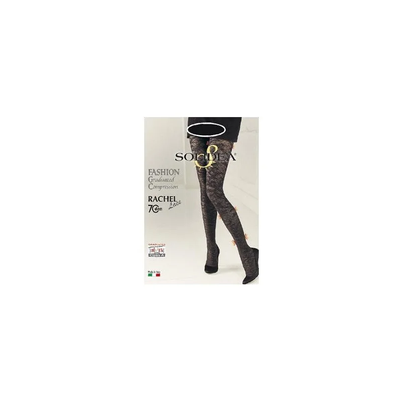 Collant in pizzo a compressione graduata. Il disegno esclusivo esalta sensualità e charme per un effetto ricco e lussuoso, da abbinare al look più sobrio ed ottenere un outfit di grande classe. L’azione preventiva della compressione graduata 10/15 mmHg combatte pesantezza e gonfiori alle gambe e contrasta l’insufficienza venosa senza disturbare l’aspetto raffinato e l’estetica impareggiabile della trama in pizzo. Con funzione igienica Sanitized.Colore: nero.