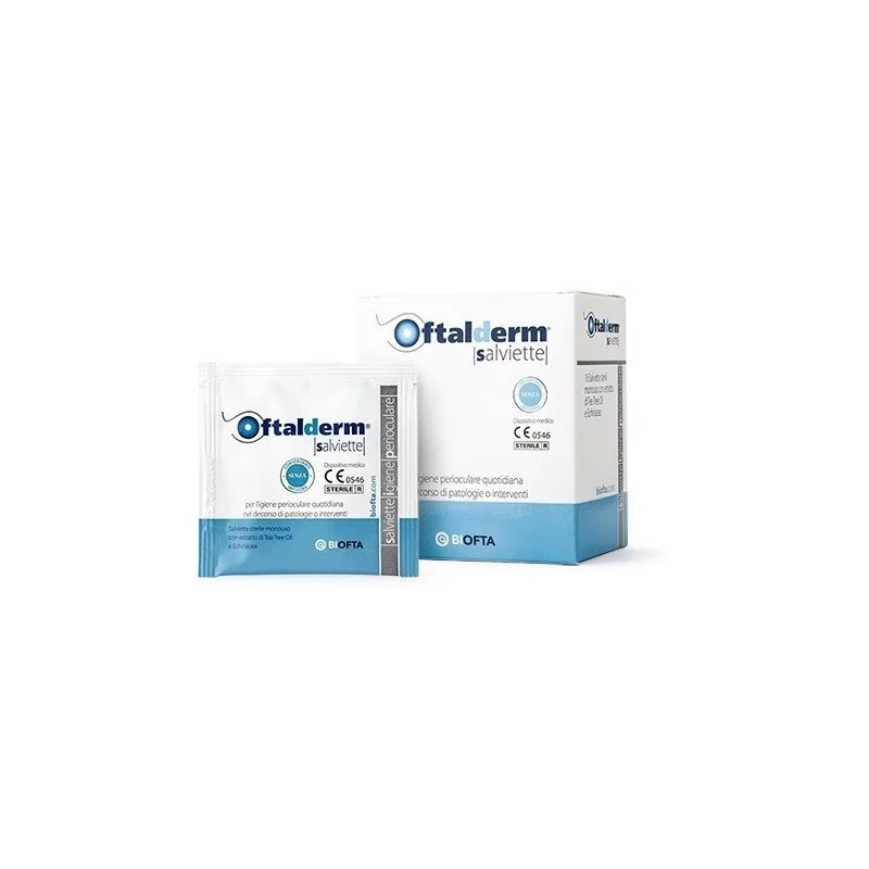 OFTALDERM SALVIETTE è costituito da morbide salviette imbibite con una formulazione contenente anche ingredienti di origine naturale che rende confortevole il momento dell’applicazione e consente la rimozione di residui squamosi, di muco e di eventuali residui di farmaci o prodotti per il trucco. Gli estratti vegetali ad azione emolliente contenuti nella crema idratano e rinfrescano la zona perioculare apportando sollievo.