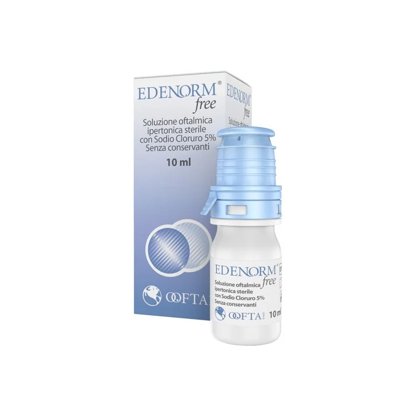 Edenorm free è una soluzione oftalmica ipertonica sterile con sodio cloruro 5%, senza conservanti, utile al trattamento dell'edema oculare. Al flacone di Edenorm free è applicato il contagocce OSD (Ophthalmic Squeeze Dispenser) che, tramite il suo sistema di filtro assoluto e valvola, garantisce il mantenimento della sterilità del prodotto senza l'utilizzo di conservanti.