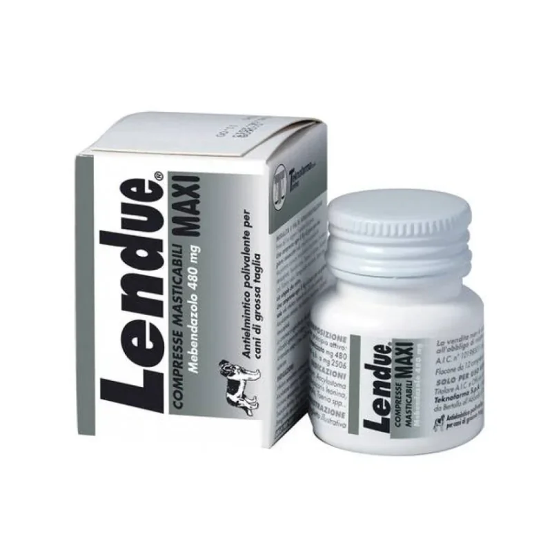 Per uso orale. Somministrare una compressa ogni 16 Kg di peso animale al giorno (pari a 30 mg/Kg p.v./die di Mebendazolo): per due giorni consecutivi, nelle infestioni sostenute da Ancylostoma caninum, Ancylostoma braziliense, Uncinaria stenocephala, Toxocara canis, Toxascaris leonina, Toxocara cati, Trichuris vulpis, Strongyloides stercoralis, Taenia spp., sia singole che miste; per un giorno solo , nelle infestioni sostenute da soli vermi ematofagi Ancylostoma caninum, Ancylostoma braziliense, Uncinaria stenocephala. La compressa e' agevolmente divisibile in quattro parti utilizzabili ognuna per trattare 4 Kg di animale. Arrotondare sempre il peso dell'animale al numero intero superiore. Le compresse, masticabili, risultano appetibili agli animali e vengono assunte spontaneamente salvo rare eccezioni; in questi casi possono essere sbriciolate e incorporate in una piccola quantita' di alimento gradito o camuffate insieme ad altre crocchette. Con la somministrazione del Lendue Maxi secondo le modalita' indicate, si ottiene la totale scomparsa dei parassiti adulti; per eliminare le forme larvali e' necessario ripetere il trattamento completo dopo 60 gg per le infestazioni da Ascaridi e dopo 18 gg per quelle da Anchilostomi dal termine del primo trattamento.