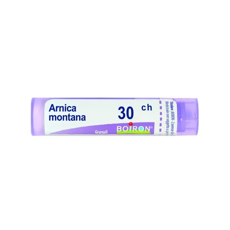 Boiron Arnica Montana 30 CH granuli è un rimedio omeopatico preparato a partire dall' Arnica, pianta perenne della famiglia delle Composite. La Tintura Madre si prepara a partire dalla pianta intera e contiene flavonoidi a tropismo venoso, pigmenti carotenoidi ad azione antiemorragica, fenoli, lattoni ( tra cui l'elenalina, irritante cutaneo).
