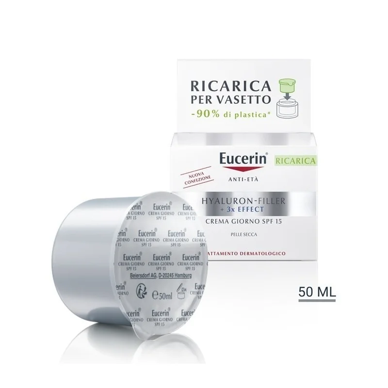 Eucerin Crema Hyaluron-filler Giorno spf15 a base di acido ialuronico come trattamento anti-rughe. RICARICA.
