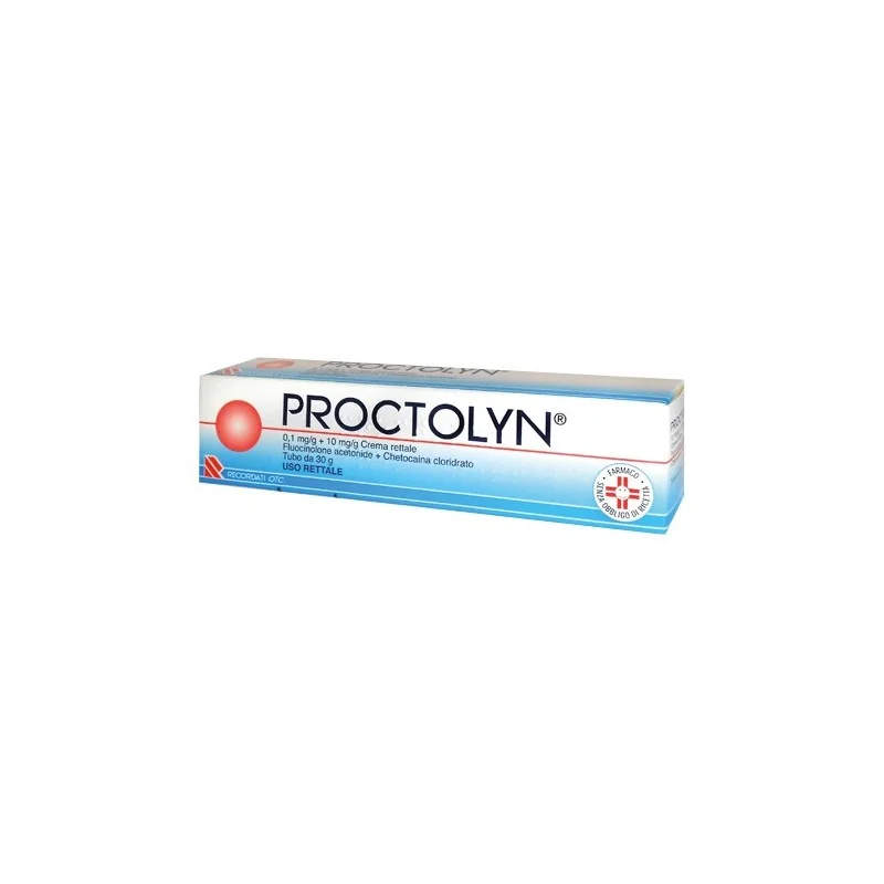 Proctolyn contiene due principi attivi: fluocinolone acetonide (glucocorticoide) che agisce contro le infiammazioni e chetocaina cloridrato (anestetico locale) che riduce la sensibilità nella zona in cui viene applicato.