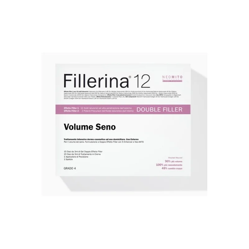 Fillerina 12 Double Filler Volume Seno Trattamento Intensivo Grado 5 è un kit per un trattamento dermocosmetico pensato per aumentare il volume del seno.