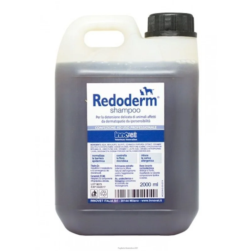 Innovet Italia Redoderm Shampoo Cane/gatto è un prodotto per la detersione delicata della cute e del mantello di cani e gatti. Il prodotto mantiene l’integrità della barriera cutanea e limita la perdita trans-epidermica di acqua (TEWL*). La formulazione contiene contiene ceramidi, estratto di echinacea, base levante normodermica per svolgere un'azione di potenziamento sulle difese naturali dell’organismo contro l’aggressione batterica.