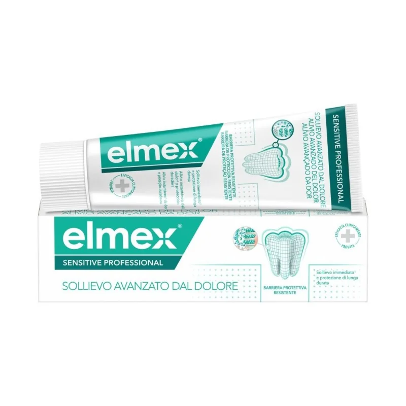 Elmex Sensitive Professional Dentifricio per Denti Sensibili è un dentifricio per un sollievo immediato dal dolore dei denti sensibili, clinicamente provato. Con l'esclusiva formula Pro-Argin, l'efficace tecnologia che i dentisti utilizzano con i loro pazienti per dare sollievo alla sensibilità dentale. Elmex Sensitive Professional occlude i canali collegati alle terminazioni nervose del dente, bloccando il dolore. Con l'uso regolare, forma una barriera protettiva che agisce da "sigillante" contro la sensibilità.