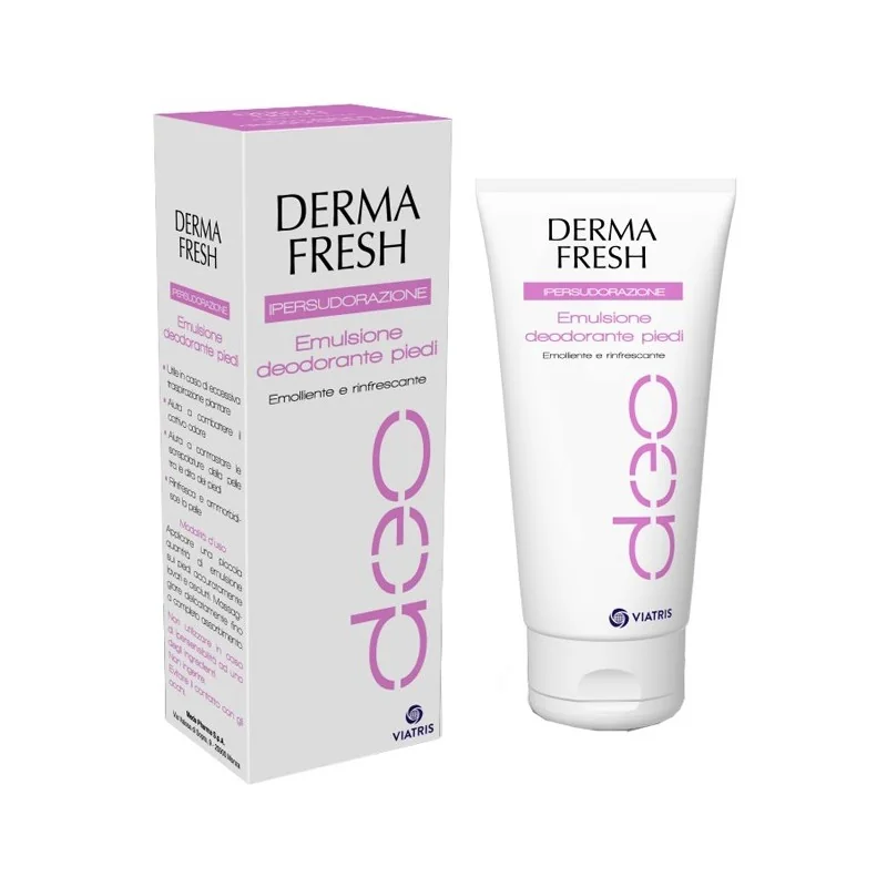 Derma Fresh Ipersudorazione Deodorante per Piedi è un emulsione deodorante per i piedi, utile in caso di eccessiva traspirazione plantare. Aiuta a combattere il cattivo odore e a contrastare le screpolature della pelle tra le dita dei piedi. Rinfresca e ammorbidisce la pelle.