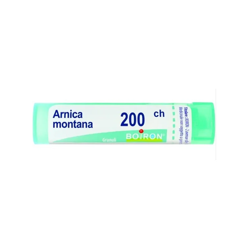 Boiron Arnica Montana 200 ch granuli è un rimedio omeopatico preparato a partire dall' Arnica, pianta perenne della famiglia delle Composite. La Tintura Madre si prepara a partire dalla pianta intera e contiene flavonoidi a tropismo venoso, pigmenti carotenoidi ad azione antiemorragica, fenoli, lattoni ( tra cui l'elenalina, irritante cutaneo).