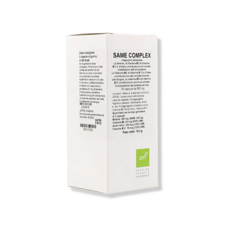 Integratore alimentare a base di betaina, S-adenosil-L-metionina (SAMe), vitamina B6, vitamina B12 e acido folico.