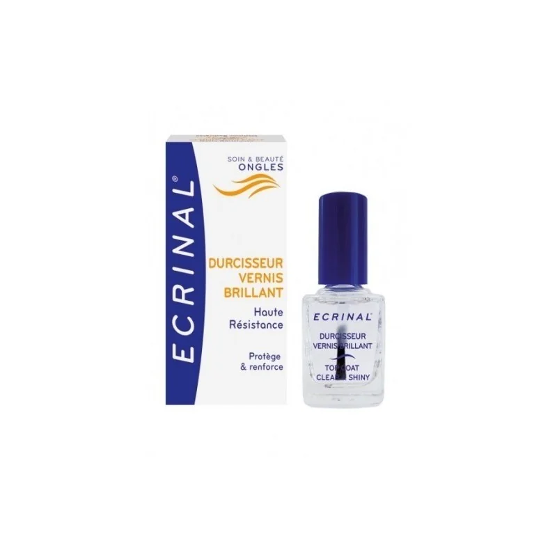 Il Top Coat Brillante Indurente ECRINAL forma immediatamente uno scudo sull'unghia per proteggerla dagli urti. Dona anche elementi fortificanti. Quando è applicato come top coat, ravviva la lucidità dell'unghia e migliora la resistenza dello smalto.