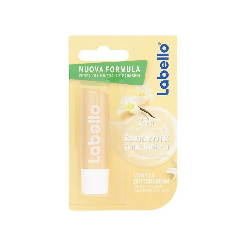 Balsamo labbra. Delizia le labbra con un dolce aroma di vaniglia con Labello. La sua formula senza oli minerali, paraffine e parabeni è arricchita con oli naturali. La sua formula piacevolmente morbida si fonde istantaneamente con le labbra, per donare un'idratazione intensa e duratura per 24 ore clinicamente testata.
