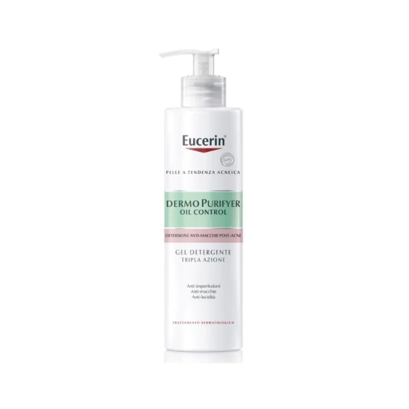 Eucerin DermoPurifyer Oil Control Gel Detergente Tripla Azione è un gel detergente per il viso che offre una tripla azione: