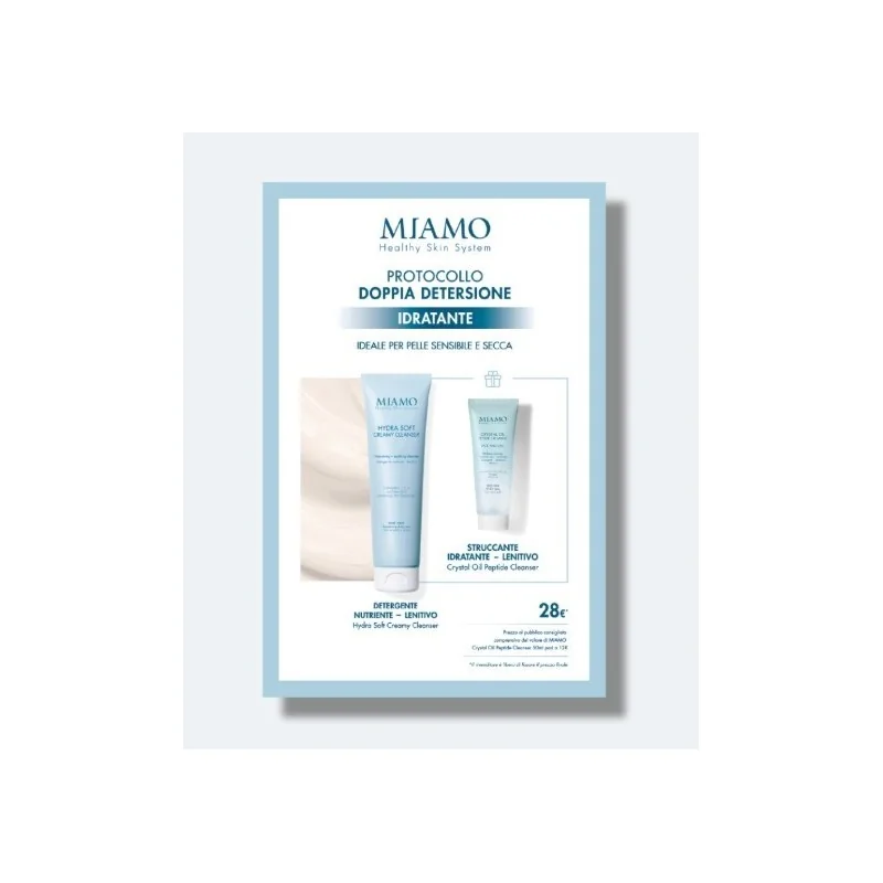 HYDRA SOFT CREAMY CLEANSER: 150ml CRYSTAL OIL PEPTIDE CLENSER: 50ml Leggi di piùDettagli Miamo Doppia Detersione Idratante Protocollo 1 Hydra Soft Creamy Cleanser 150 Ml + 1 Mini Crystal Oil 50 Ml