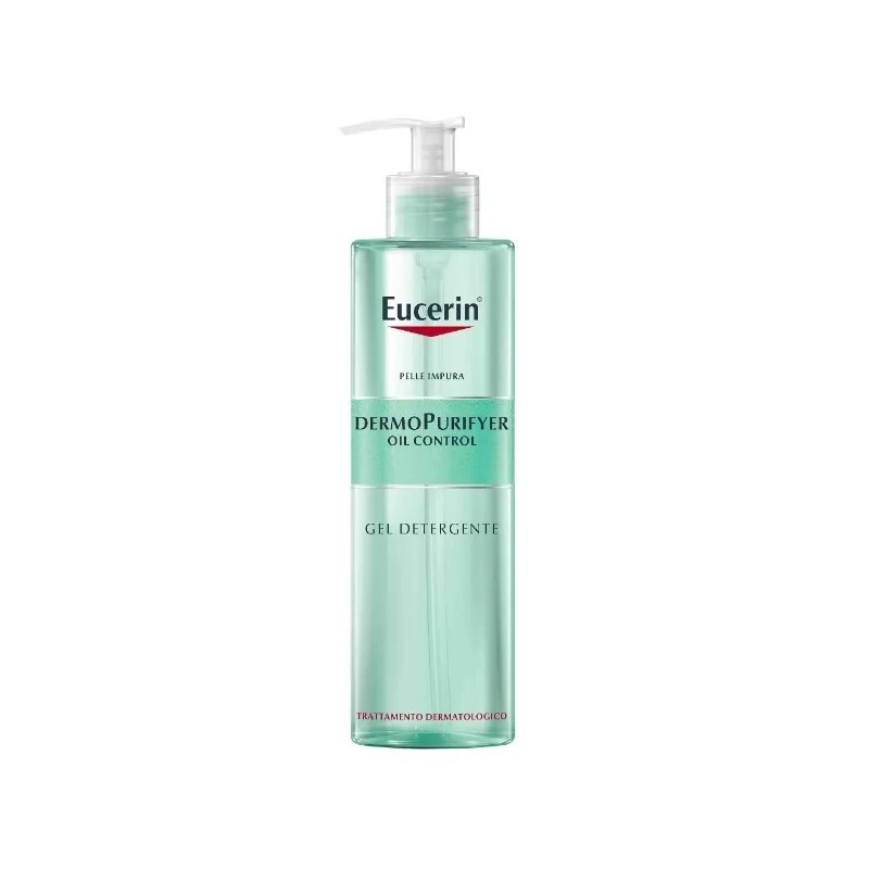 Eucerin dermopurifyer oil control è un gel detergente viso senza sapone e senza profumo, non comedogenico, per la detersione quotidiana del viso con pelle grassa, impura e tendente all'acne. Con il 6% di Anfo-Tensidi, deterge la pelle delicatamente ma in maniera efficace rimuovendo lo sporco, il trucco ed il sebo in eccesso. Grazie alle sue proprietà antibatteriche, il gel elimina i batteri della pelle e ne previene la proliferazione. Il gel detergente può essere utilizzato in combinazione con il trattamento farmacologico per l’acne e durante la gravidanza. Gli studi clinici e dermatologici hanno confermato l'eccellente tollerabilità cutanea ed una delicata azione detergente se utilizzato sulla pelle impura e a tendenza acneica.