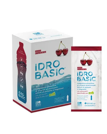 Integratore alimentare di minerali alcalinizzanti (citrati di potassio e magnesio), dolcificato con stevia. Ideale nel gestire e prevenire alcune patologie collegate alla disidratazione, e favorire una situazione di benessere derivante da un corretto equilibrio idrico dell'organismo. L'idropinoterapia è particolarmente importante in taluni soggetti sottoposti a forte disidratazione o ad aumentati fabbisogni: donne in gravidanza, atleti e sportivi in genere, bambini, anziani, pazienti affetti da calcoli renali, osteoporosi, dissenteria o in terapia con diuretici, lassativi e cortisonici. Idrobasic inoltre, apporta la giusta quantità di potassio e magnesio, al normale metabolismo energetico e alla normale funzione muscolare e ossea. Il tutto è stato realizzato utilizzando una miscela a bassissimo contenuto calorico (massimo 25 kcal per ogni bustina). Idrobasic ha una natura alcalina, infatti, essendo a base di citrato, è anche utile ad integrare una dieta povera di valenze alcaline (frutta e verdura) o compensare una dieta con elevato apporto di proteine o grassi che determinerebbero un eccessivo carico acido per l'organismo.