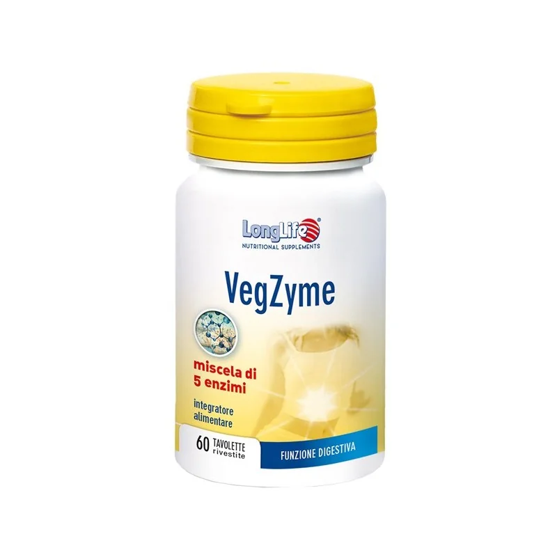 Longlife Vegzyme Integratore di Enzimi Digestivi - 60 Tavolette