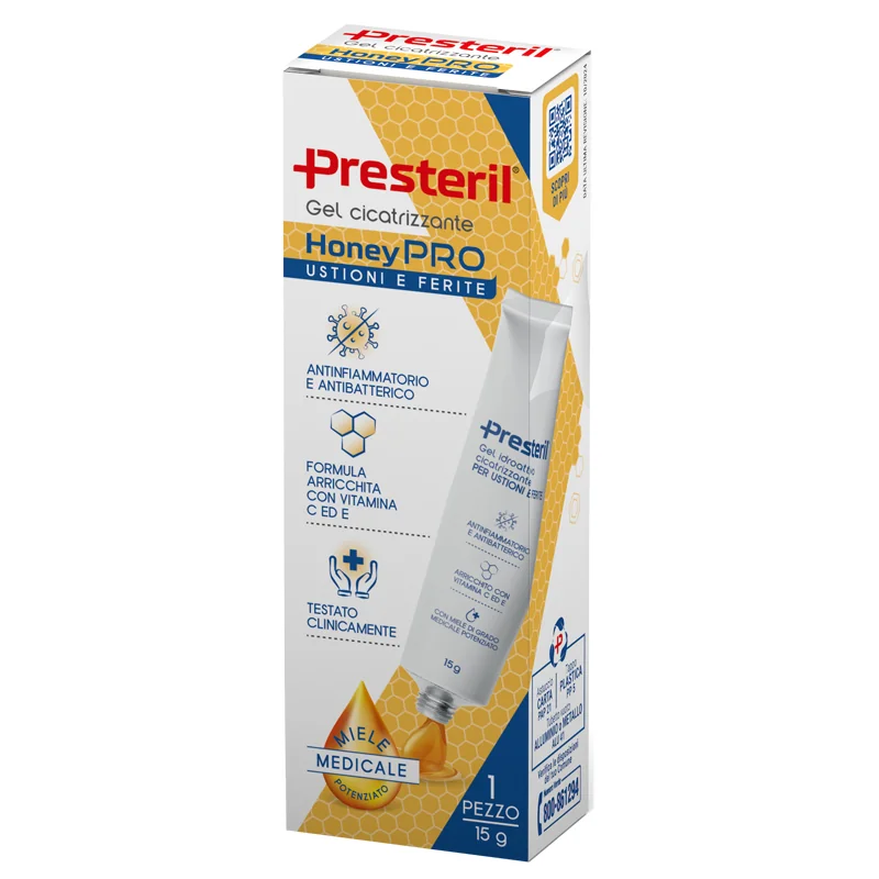 Gel idroattivo cicatrizzante HoneyPRO che contiene il 40% di miele di grado medicale. Inoltre, la formulazione.