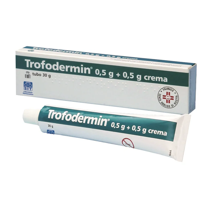 Trofodermin 500 Mg/100 g + 500 Mg/100 g è una crema per l'automedicazione che favorisce la guarigione di lesioni, abrasioni ed ustioni
