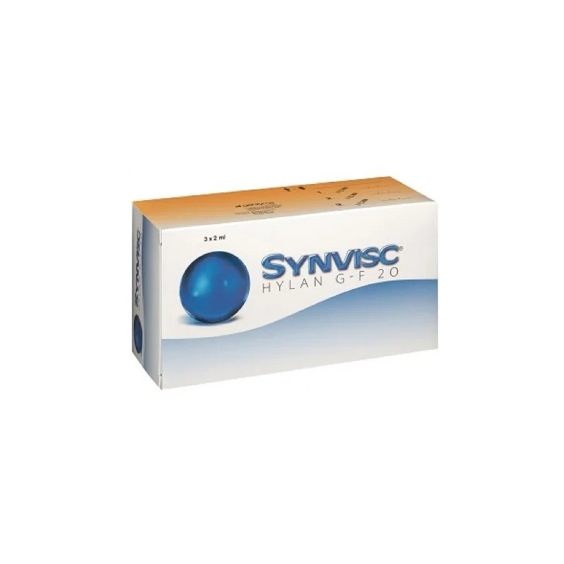 Synvisc viene fornito in tre siringhe di vetro da 2,25 ml cad. preriempite con 2 ml cad. di Hylan G-F 20.