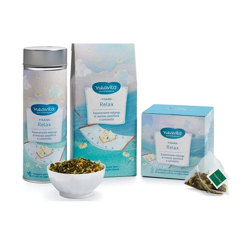 Rasserenante mèlange di melissa, passiflora e camomilla. 15 filtroscrigno biodegradabili di pregiate piante in taglio tisana.