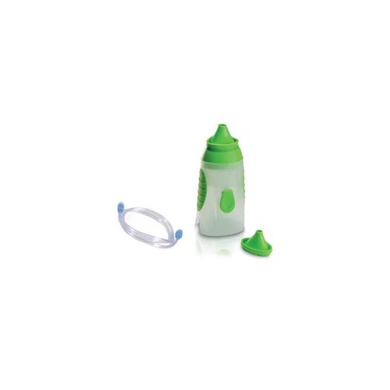 Progettata per effettuare il lavaggio ed il trattamento delle cavità nasali sia con soluzione salina che con farmaci ad uso aerosolico, favorendo la fluidificazione delle secrezioni nasali.